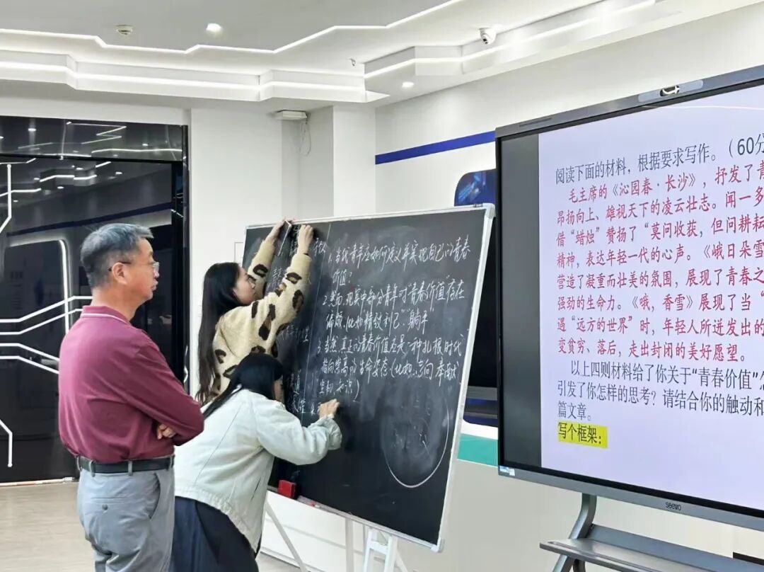授课过程中,石修银教授鼓励学生主动分享审题切题、撰写标题的想法,针对性纠正立意模糊、角度泛化、脱离材料核心等问题,引导学生从表层解读迈向深度剖析,逐步掌握科学审题方法。同学们踊跃互动,思维活跃度高,在实战演练中快速领悟审题精髓,课堂实效显著。我校听课教师全程潜心观摩,细致梳理教学环节与指导策略,深感课程紧扣备考需求、实操性极强,为日常议论文审题教学提供了优质借鉴。