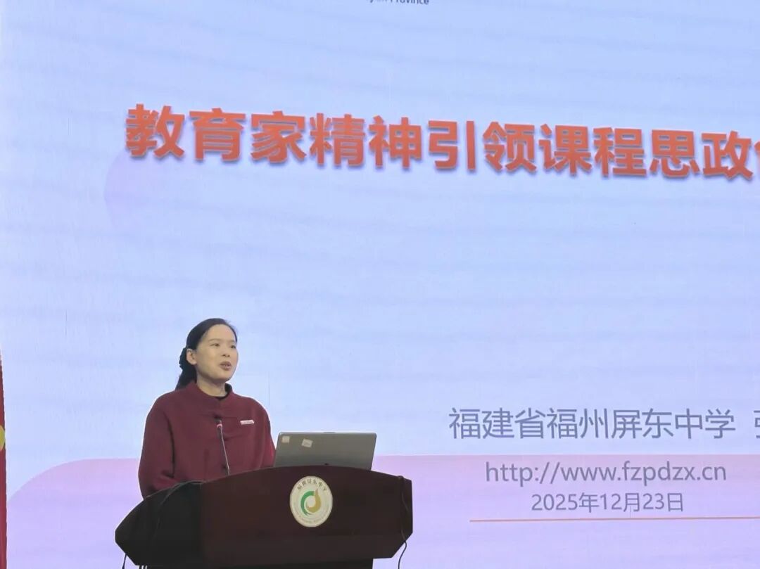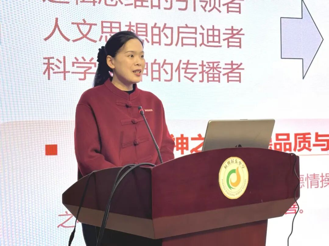 张鸿副校长获评全国模范教师、福建省优秀教师、福州市最美志愿者、福州市教育系统先进工作者等荣誉称号。宣讲会上,她围绕教育家精神的核心要义,结合教育系统劳模的先进事迹,从国家责任与弘道使命、道德品质与理想人格、职业态度与岗位能力三个维度展开深入解读。他指出,劳模精神与教育家精神一脉相承,劳模身上彰显的 “心有大我、至诚报国的理想信念”和 “胸怀天下、以文化人的弘道追求”,正是新时代教师应扛起的国家责任与使命担当。