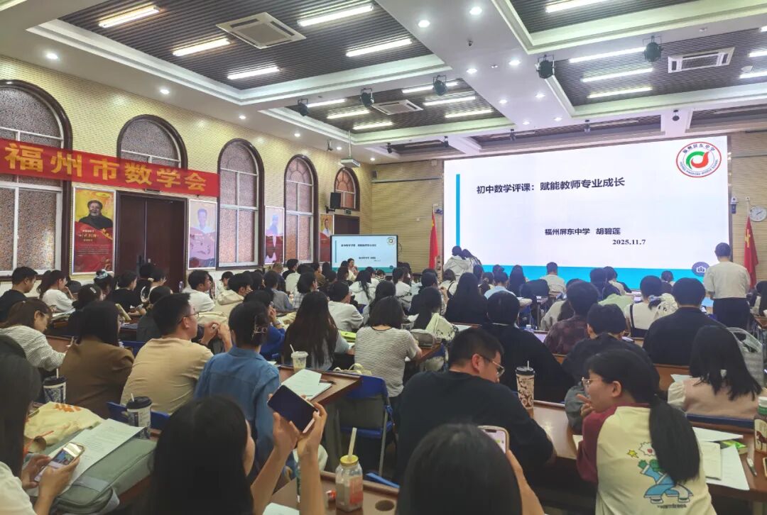 为促进教师专业发展,提升课堂教学质量,福州屏东中学数学组于2025年11月7日在道德讲堂开展数学大教研活动。本次活动由福州屏东中学初中部数学组教研组长胡碧莲老师和福州教育研究院林经武老师进行专题分享,福州屏东中学初中部全体数学教师参与,福州市见习期数学教师共同参与研讨交流。
