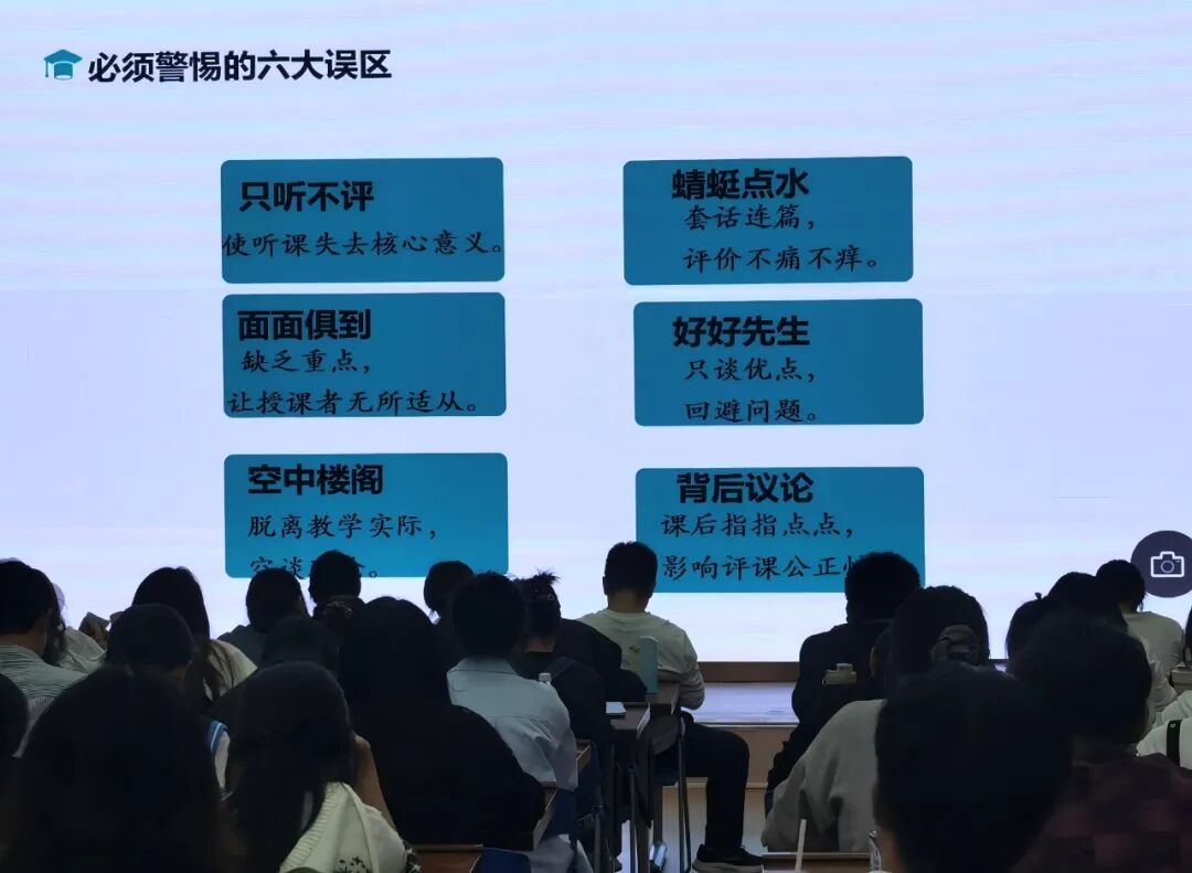 为确保评课活动健康、有效,胡老师特别提醒大家要警惕实践中常见的六大误区:“只听不评”的沉默症、“蜻蜓点水”的表面化、“面面俱到”的无重点、“好好先生”的和稀泥、“空中楼阁”的理论派、以及“背后议论”的不规范。她强调,树立客观公正、深入具体、与人为善的评课态度,是评课能够真正赋能教师成长的文化基础。