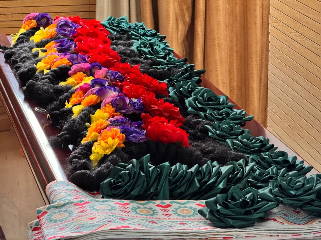 荣誉的背后,是师生们的共同深耕。孙璐老师并未止步于歌曲演唱技巧的指导,而是从历史文化维度为同学们搭建理解桥梁:通过梳理菲律宾宿务的地域文化、民歌发展历程,解读歌曲中蕴含的民俗风情与人文内涵,让同学们明白《Rosas Pandan》不仅是一首旋律动听的歌曲,更是菲律宾人民生活与情感的载体。正是这份对文化背景的深刻理解,让同学们的演绎既有技巧高度,更有情感厚度。舞台上妆造道具方面,张冰老师以“民俗艺术与舞台造型”为主题,带领同学们深入研究东南亚与西班牙融合的美学风格,从材料选择、设计草图到制作工序。同学们尝试制作部分道具,在实践中感受不同文化的美学特质,最终让学生们理解每一件道具都能成为歌曲风格的延伸,既展现了同学们的动手能力,也培养了他们的审美素养,更践行了我校“以美育人”的教育理念。