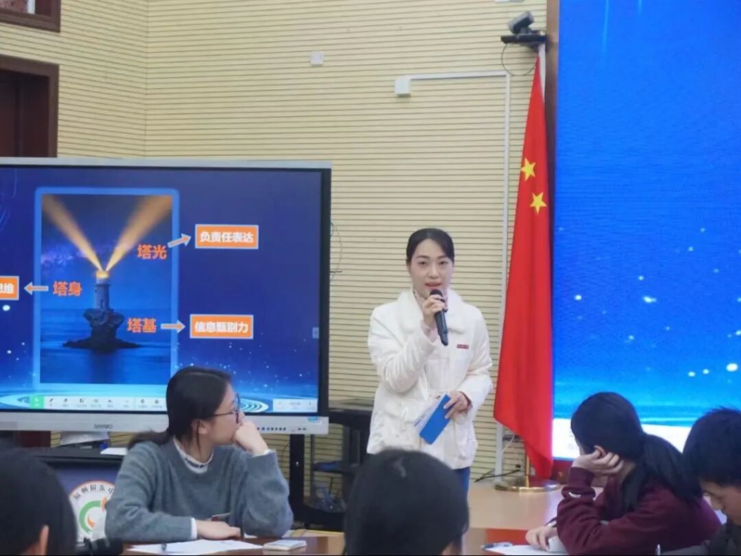 针对李雯老师的《从“数字公民”到“理智灯塔”》主题班会课,陈耀熙老师给予高度评价:“本节课选题极具现实意义,紧扣‘网络原住民’的学生群体特征,精准切中青少年网络素养培育痛点。李老师教学素养扎实,课堂节奏把控精准,互动效果良好,充分展现了思政课的针对性与吸引力。”李明胜老师也对该课程打磨过程与最终呈现效果表示肯定:“从试讲到正式亮相,课程历经全方位打磨,每个环节设计、案例筛选都反复推敲。李老师对课程理解愈发深刻,教学节奏把控精准自如,能精准捕捉学生思维火花,预设与生成完美融合,尽显扎实教学功底与精益求精的教研态度。”