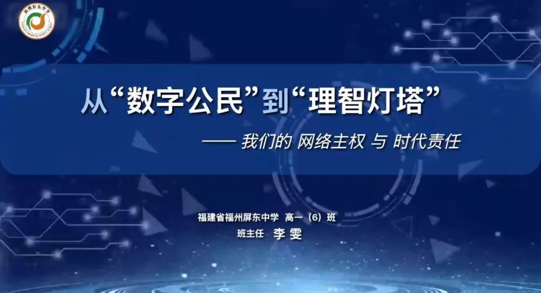 李雯老师面向高一学生的《从“数字公民”到“理智灯塔”》班会课,立足“青少年网络安全意识教育研究”主题,聚焦高中生网络安全意识升维,围绕“数字足迹”“网络主权”等核心概念,剖析AI诈骗、网络暴力的危害,解读2025年新修订《治安管理处罚法》相关条款。