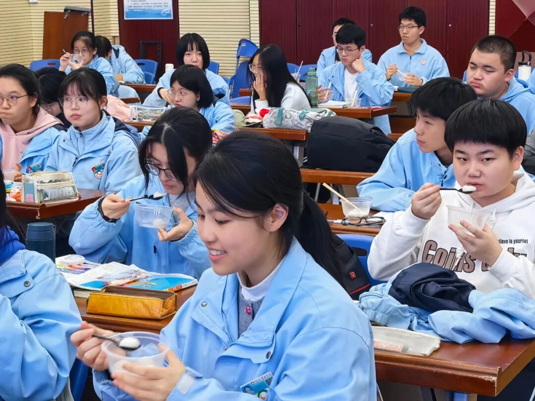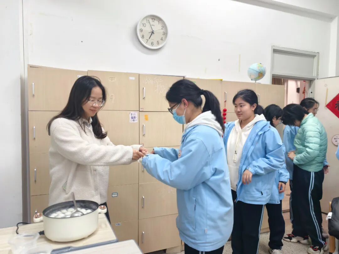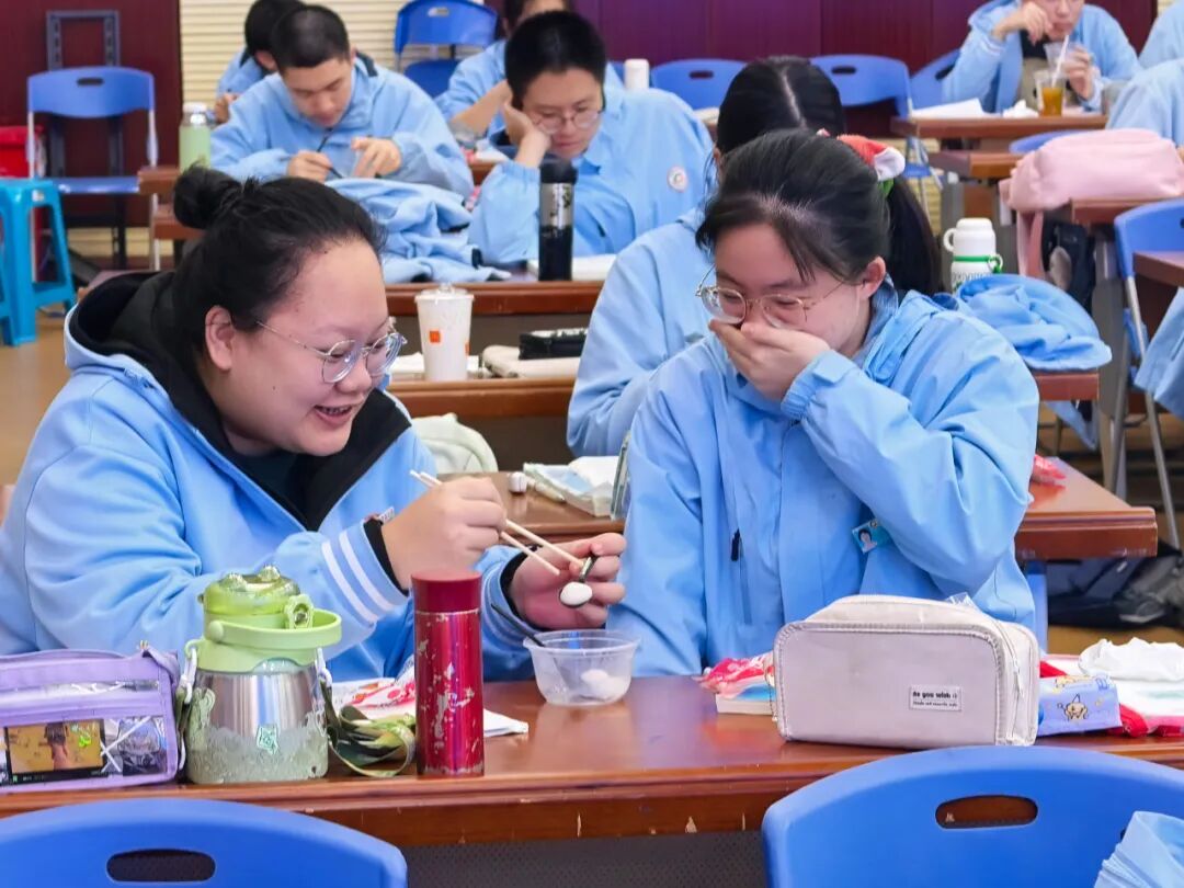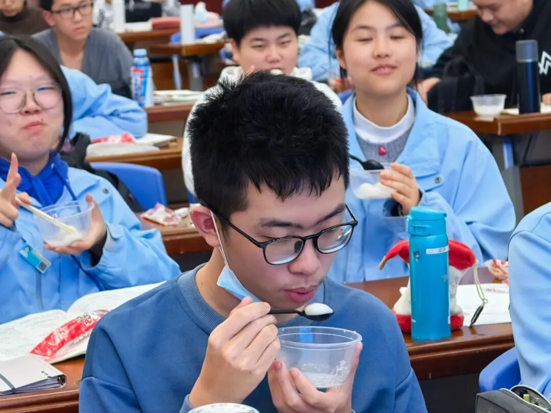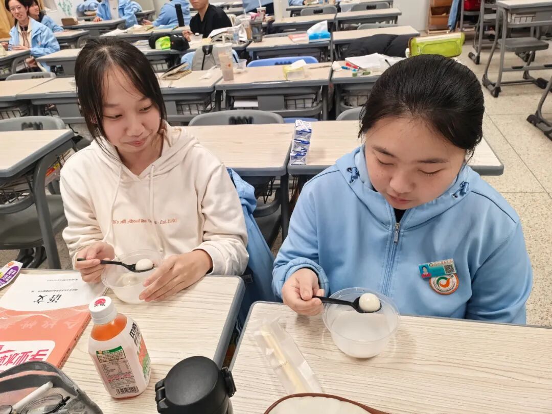 捧着温热的汤圆,同学们的脸上漾起了灿烂的笑容。大家围坐在一起,分享着这份冬日里的甜蜜,备考的疲惫也在欢声笑语中悄然消散。有同学感慨道:“这碗汤圆不仅甜在嘴里,更暖在心里,让我们知道自己不是孤军奋战,身后有学校领导和全体教师的的关怀与陪伴。”