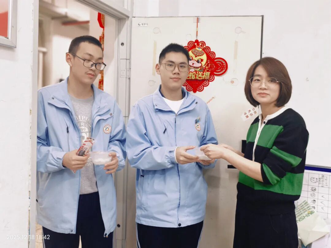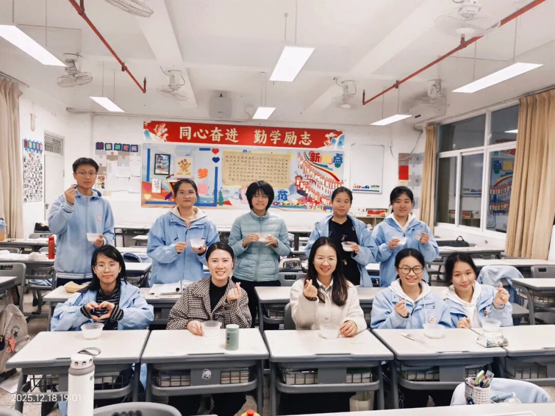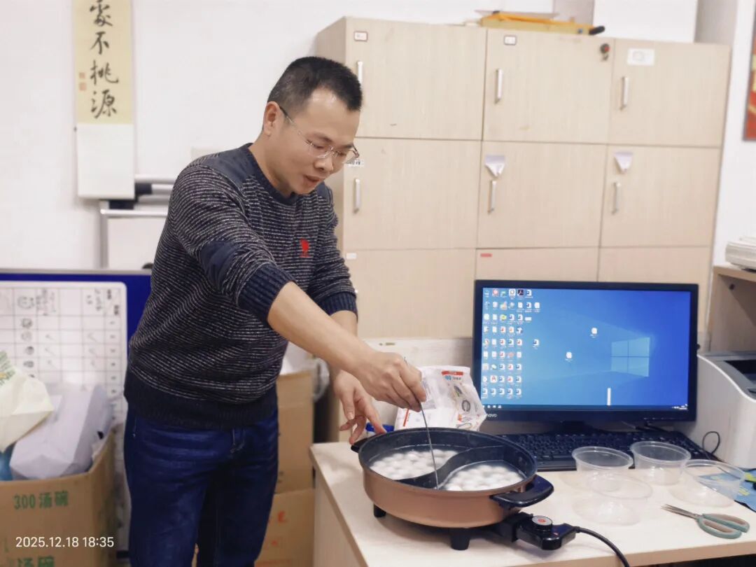 为积极响应学校温暖集体建设号召,扎实推进“温暖年段、温暖班级”建设工作,让奋战在备考一线的高三学子感受集体关怀、舒缓学习压力,我校于2025年12月18日晚,为高三学子精心筹备了一场冬至送汤圆活动。